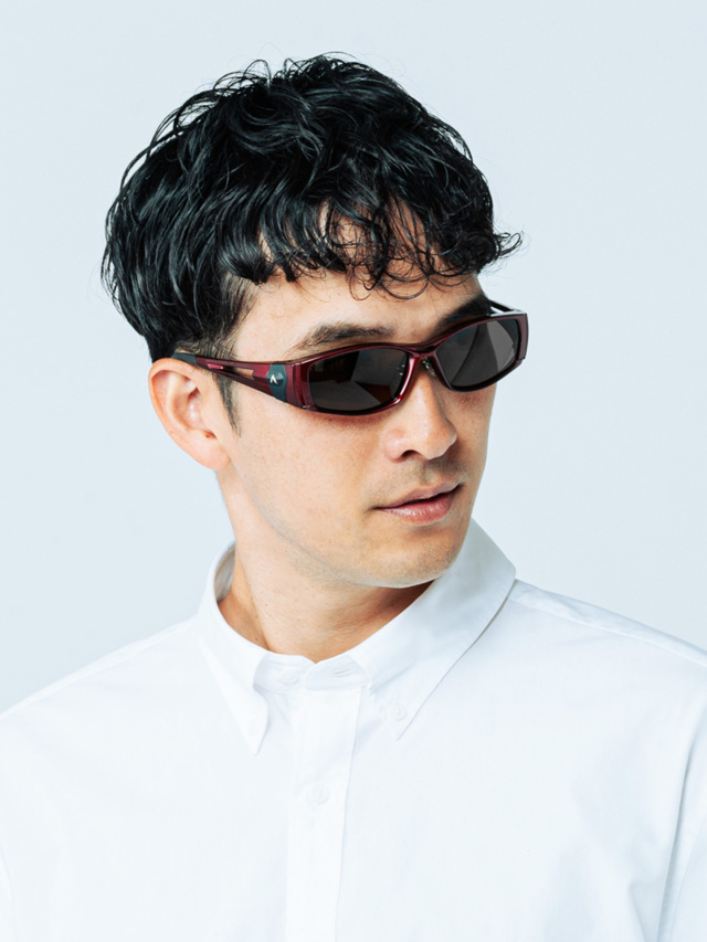 抜群の耐衝撃性を誇るポリカーボネイト製偏光レンズは突然のアクシデントから目をガードし、