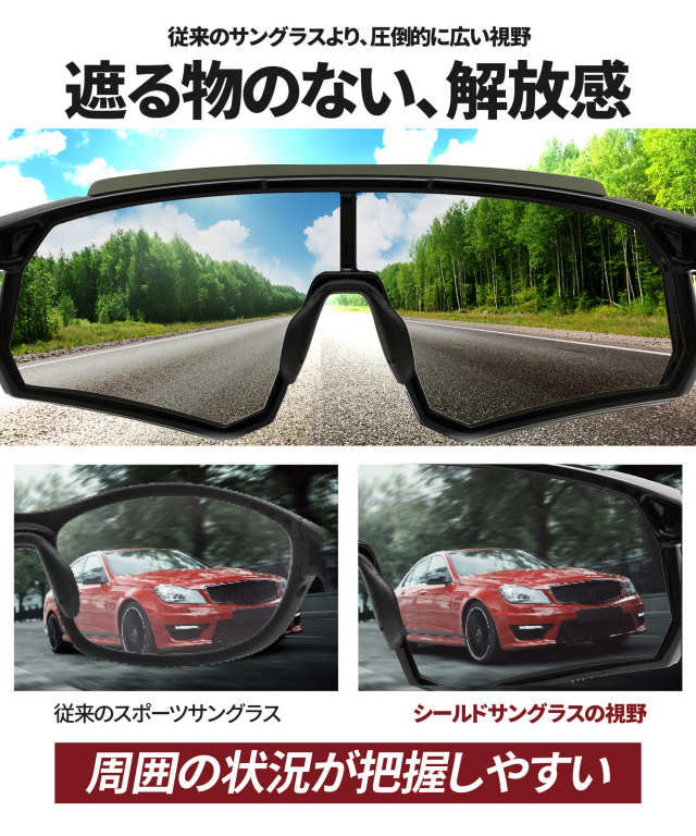 自転車用に購入しました。レンズが大きくて、ちょっとしたゴーグルのような感覚で眼を保護してくれて良いです。ポプラの綿毛の侵入を防いでくれて助かります。秋の雪虫にも威力を発揮してくれると思います。