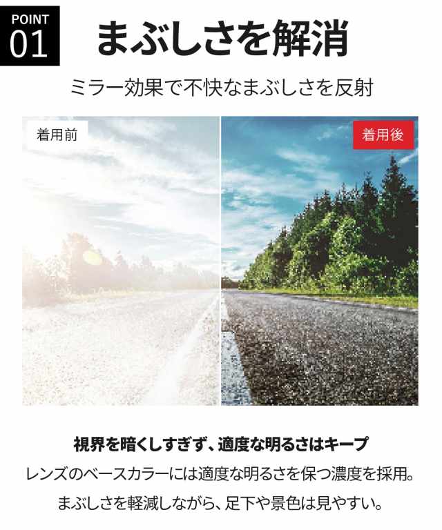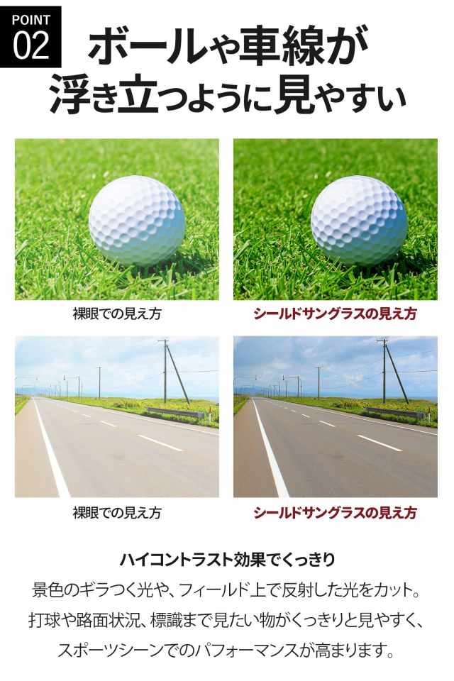 さらに、ハイコントラスト効果で視界をくっきり鮮明に。UV99.9%カット