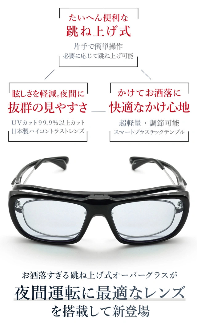 メガネ使用者に朗報!夜間運転に優れたオーバーグラス。
