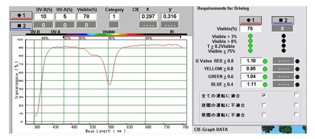 特に眩しさを感じる黄色光を55%以上カットし、その他の色は、よりその色に近く見えるため、眩しさをカットしながら信号機や標識が見やすいレンズです。