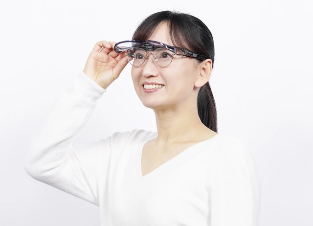 6,メガネの上からかけてもお洒落に、片手で簡単に跳ね上げ可能で便利