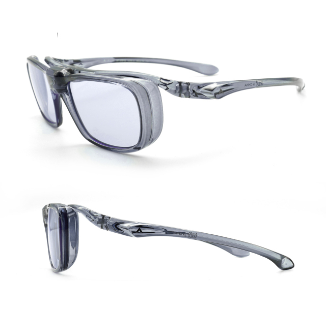メガネの上からサングラスの跳ね上げモデル