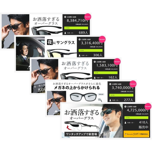 当社では、2020年12月に「お洒落すぎるオーバーグラスAF-OS11」を発表以来、応援購入サイトMAKUAKEにおいてメガネの上からかけられるオーバーグラスを3,600名以上の皆様に応援購入いただいております。この度、先に発表した最新作の広い視界とより多くのメガネに対応するオーバーグラスをベースに、日本製の夜間運転に適したレンズをセットしてお届けします。