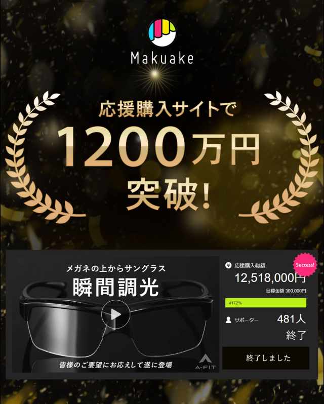 瞬間調光サングラス A-FIT FLASH からメガネの上から重ねてかけられるオーバーサングラスモデルが登場。