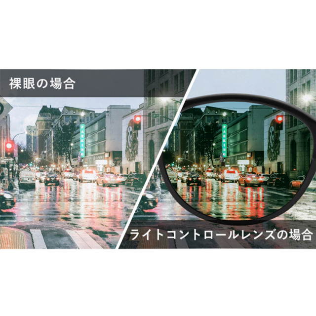 本商品の目に見える光をコントロールするレンズは、夜間により見やすく快適に運転するために周囲が暗い環境下では視界の明るさを確保し、対向車のヘッドライト等の眩しさを和らげ、 信号機の色や標識が見やすいことを目的に開発された、夜間運転のためのJIS規格に適合する日本製レンズを採用しています。 また夜間のウォーキングや自転車に乗られる際にもたいへん見やすく、日中のご使用でもコントラストを高めて見やすくなる商品です。