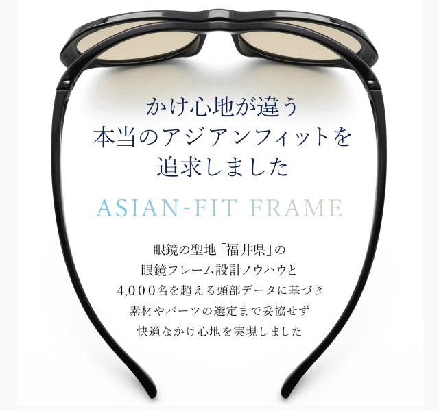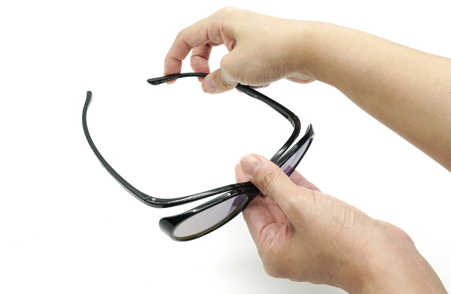 テンプル(つる)をお湯で温めるだけで、ご自身の顔の形に合わせたオーダーメイドのようなフィット感に調整可能です。