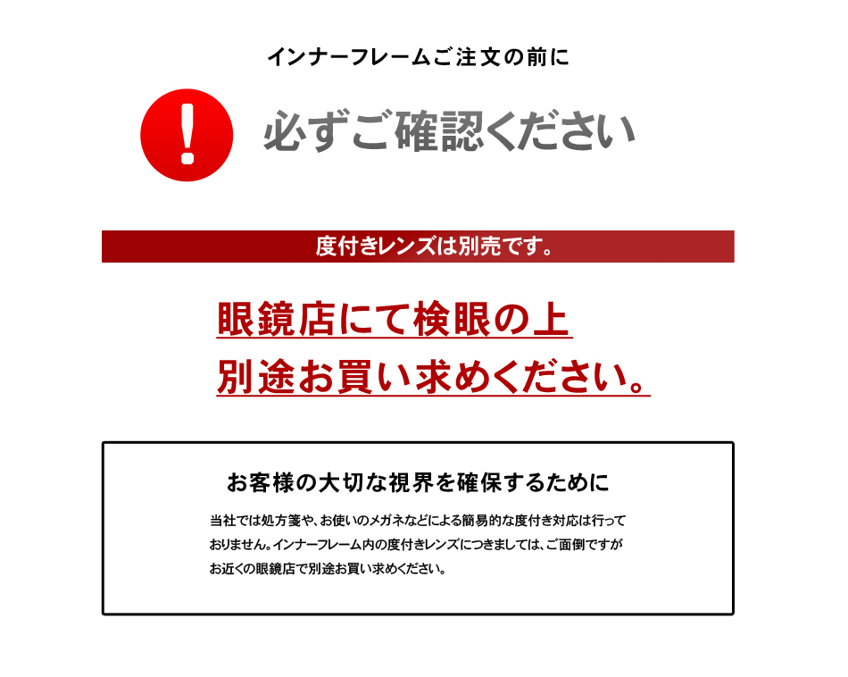 インナーフレーム内の度付きレンズにつきましては、ご面倒ですが、