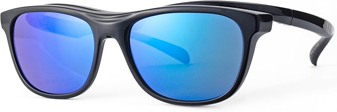 ミラーレンズを選ぶなら、ブラックフレーム+ブルーミラーレンズの組み合わせがおすすめです。優れた防眩性能で路面や水面からのまぶしさを徹底的に除去します。重さはわずか30gで、メガネとの二重装着でも疲れにくい設計です。フレーム素材にはフロントにTR90、テンプルにスマートプラスチックを採用し、軽さと強度を両立しています。